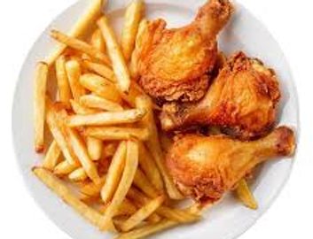 Fried chicken drumsticks and flats that come with delicious plantains and a side of white rice or dijon rice.